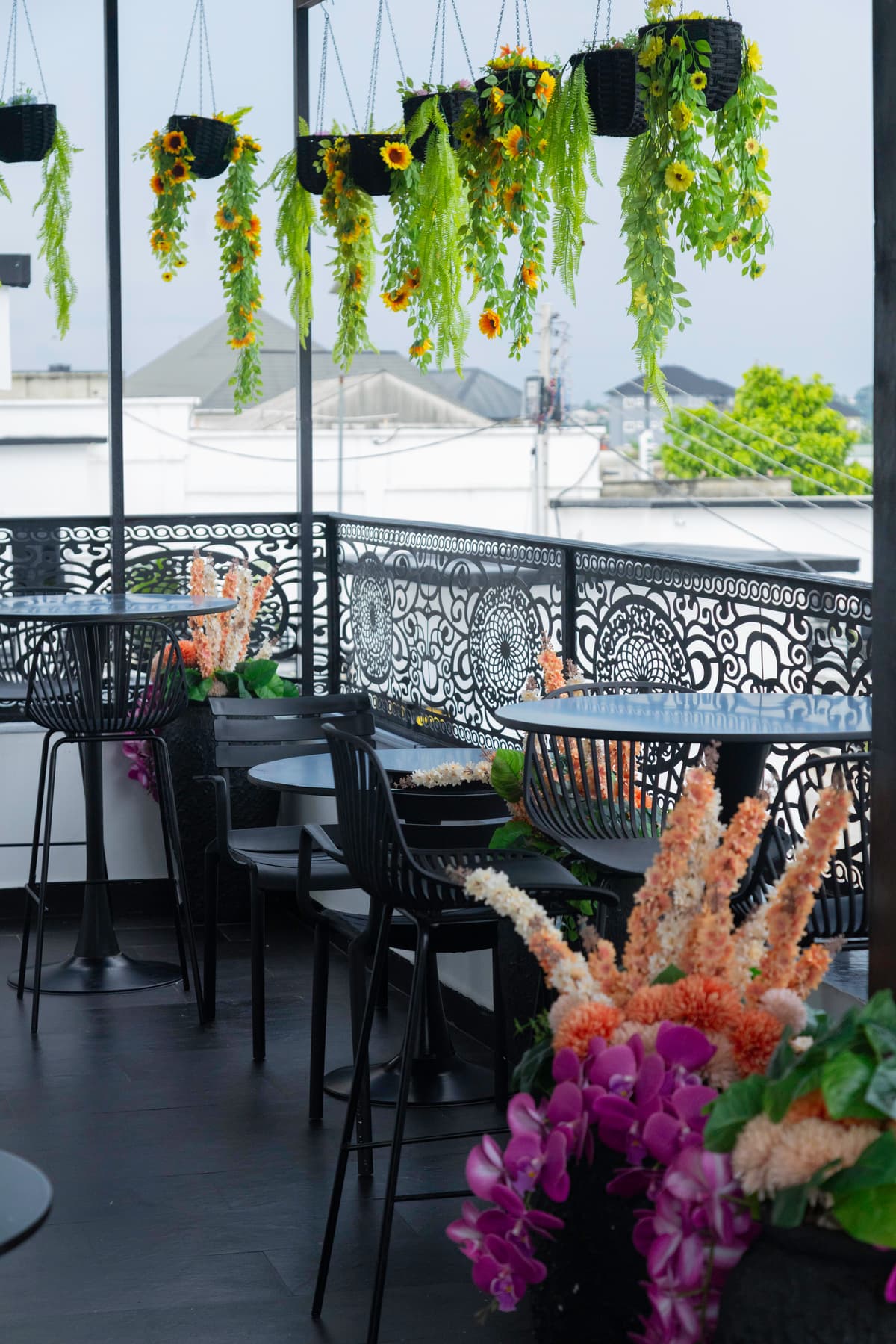 Beautifully landscaped outdoor area with shaded seating for al fresco relaxation